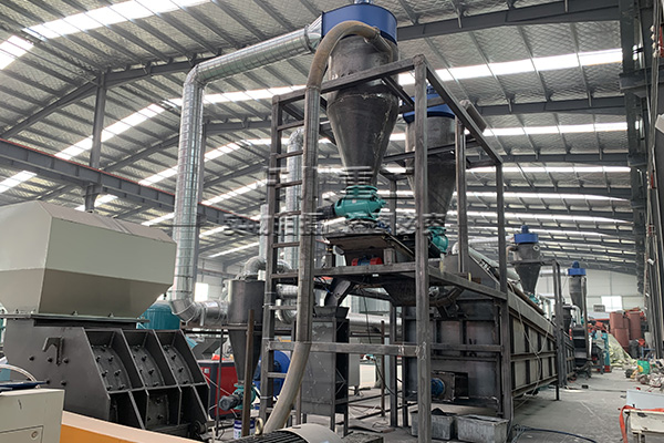 仟川重工鋰電池片回收處理設(shè)備中的滾筒篩采用的是全網(wǎng)出料模式,上下的抽離和脫落黑粉,提高了滾筒篩下料效率快。滾筒篩進(jìn)行篩分好的物料輸送至下一道工序粉碎,將篩分的片材料再次進(jìn)行粉碎,脫離出剩余的黑粉,再將粉碎機(jī)中已經(jīng)粉碎過的材料進(jìn)行內(nèi)部抽離進(jìn)入滾筒篩分機(jī)中,抽離過程中會(huì)對(duì)抽離風(fēng)機(jī)造成一定的磨碎,篩分出顆粒狀的物料和黑粉。